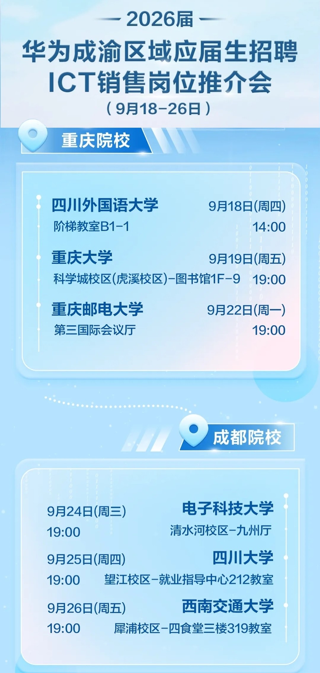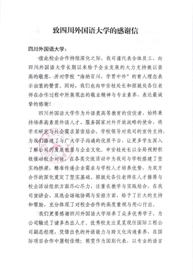 近年来,服务产业、企业出海已成为川外毕业生就业的重要“名片”。今年暑假期间,已经有不少单位联系学校招聘2026届毕业生。9月3日开学后,学校聚力就业市场建设,主动邀请用人单位来校招聘,学校用人单位库新增注册且有明确来校招聘需求的用人单位173家,含世界500强8家,中国500强5家,民企500强1家,上市公司20家。一批过去有过供需合作的用人单位纷纷联系学校,部分用人单位将西南地区首场线下招聘会放在学校,也有单位给学校发来了感谢信,充分体现对我校毕业生的重视与认可。9月以来,学校共开展46场次专场招聘宣讲会和一场小型双选会,提供岗位超5000余个,学校2026届毕业生共计4000多人次参与了招聘活动。中国水利水电第十四工程局、中国电建集团、陕西重型汽车、海南航空、日丰集团、华陆工程科技、华为、荣耀、小米、特变电工、立信数字科技、中兴通讯、美的暖通设备、海信集团、传音通讯等用人单位已逐步开始签约2026届毕业生。
