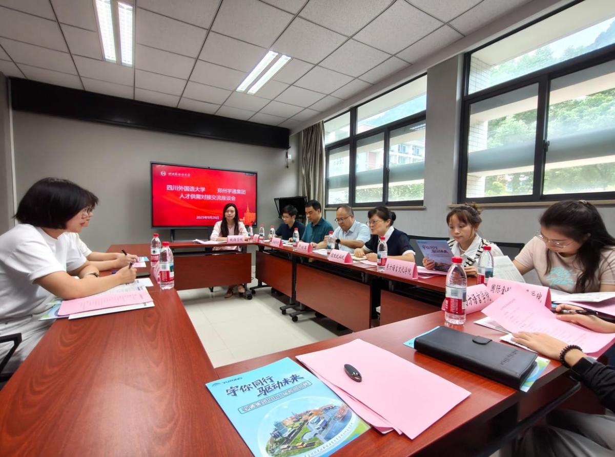 9月26日下午,郑州宇通集团有限公司招聘经理张静一行来校洽谈外语外贸人才供需合作,座谈会于立德楼B202会议室举行。副校长严功军出席座谈会,法语学院、俄语学院、西方语言文化学院、东方语言文化学院、国际工商管理学院、国际金融与贸易学院等相关单位代表参加,会议由招生就业处副处长张雪松主持。