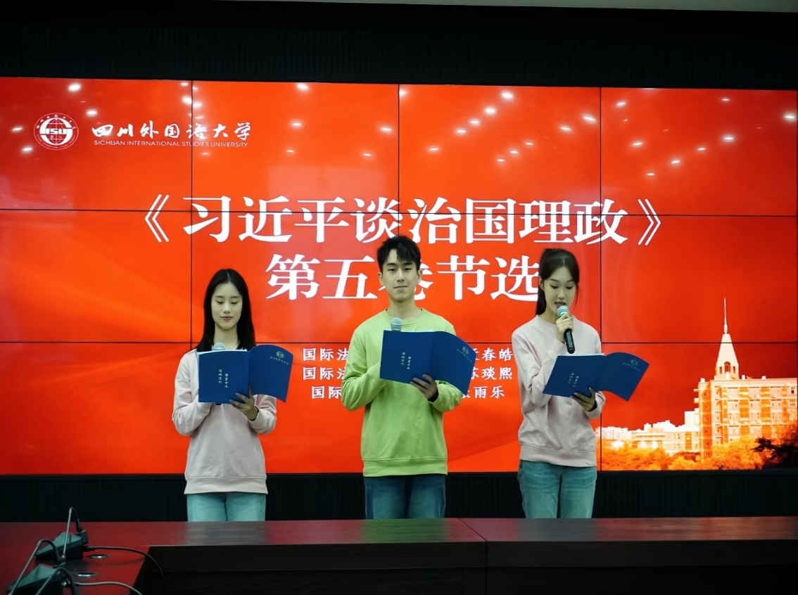 活动伊始,与会师生共同学习了《习近平谈治国理政》中关于廉洁文化的重要论述。来自国际法学院与社会学院孟春皓、苏琰熙与国际工商管理学院张雨乐三位同学,以中英双语形式进行了领学。紧紧围绕习近平总书记关于加强新时代廉洁文化建设的重要论述,强调全面从严治党与党的自我革命永远在路上,要加强党性教育和廉洁文化滋养,引导川外青年学子深入领悟廉洁精神内核,筑牢拒腐防变的思想防线,推动廉洁理念落地生根。