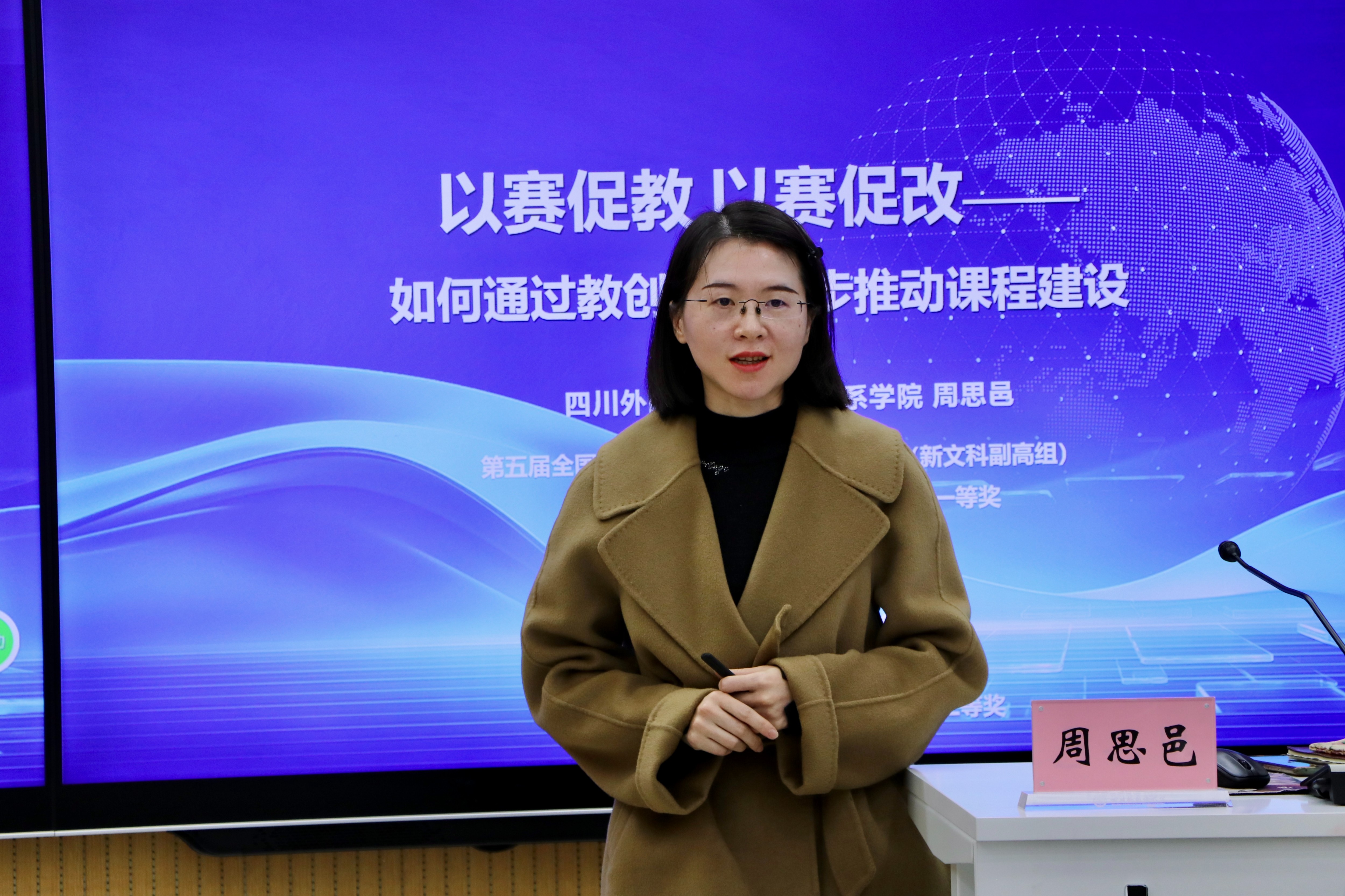 培训第一阶段,全国高校教师教学创新大赛一等奖获得者、国际关系学院副院长周思邑以“以赛促教、以赛促改——如何通过教创赛推动课程建设与教学提升”为题,系统分享了参加第五届全国高校教师教学创新大赛的实践经验。以《领事与侨务》课程为例,聚焦教学创新核心要旨及备赛策略,提出了“一体贯通、三轮驱动、六力并举”的教学创新路径,详细阐释了如何以大赛为契机,系统梳理、总结提升课程特色、发现问题、提升课程建设质量。并强调以真实问题为导向、以学生为中心,通过深入思考、总结提炼精准定位教学痛点难点,探寻突破路径,实现从“教师要教什么”到“学生要学什么、能学到什么”的根本性转变,给在场教师带来了深刻启发。