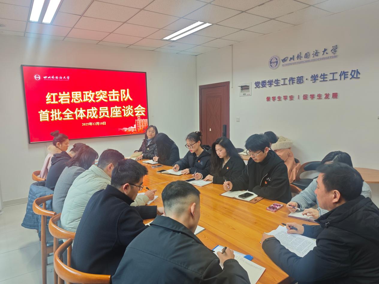 为深入贯彻落实党的教育方针,扎实推进立德树人根本任务,将“红岩思政”走深走实,经过个人申报、院系推荐、党委学工部审核,牵头成立了以辅导员为主体的红岩思政突击队。12月18日,学工部召开红岩思政突击队首批全体成员座谈会。