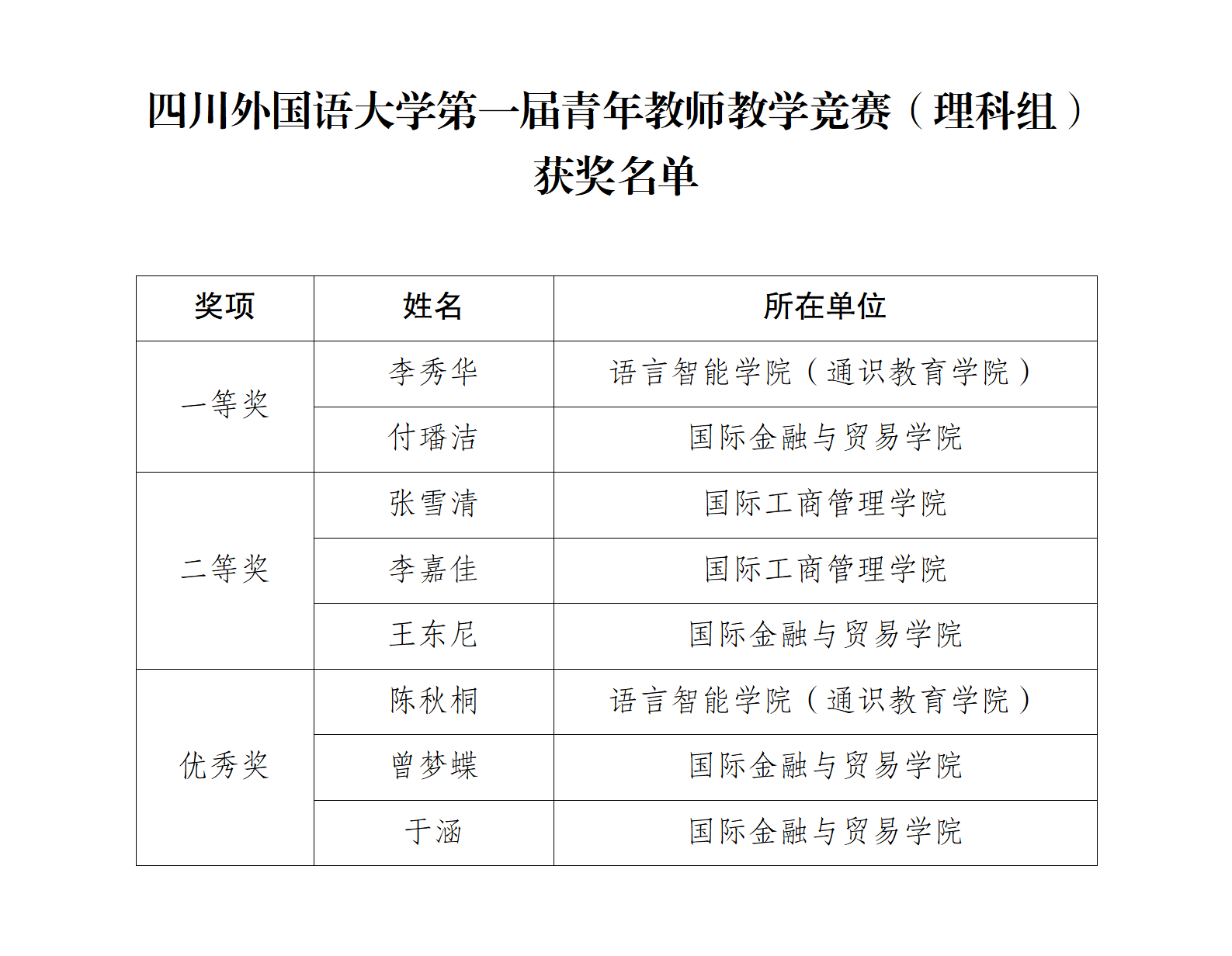 为深入贯彻落实立德树人根本任务,锤炼青年教师教学基本功,进一步推动学校青年教师队伍建设发展,3月16日,由校工会、教务处主办,国际金融与贸易学院承办的四川外国语大学第一届青年教师教学竞赛(理科组)现场赛在博文楼二楼校工会教工之家举行。副校长卢波、严功军出席活动并与参赛教师座谈交流。