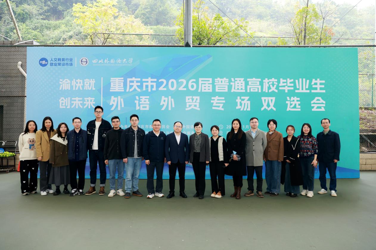 11月14日,由重庆市教育委员会、我校主办的“渝快就•创未来”——重庆市2026届普通高校毕业生外语外贸专场双选会在我校西区风雨操场举行。此次双选会聚焦外语外贸与人文教育领域,参会企业来自全国11个省级行政区,涉及矿业、制造业、教育业、交通运输业等17个行业领域,其中包括中国化学工程第七建设有限公司、中曼石油天然气集团股份有限公司、赛力斯汽车有限公司、重庆巴蜀常春藤学校等一批知名单位。双选会共吸引100余家用人单位参与,提供优质岗位超3000个,1000余名毕业生有序咨询、踊跃投递简历,企业累计接收简历数量超3000份。
