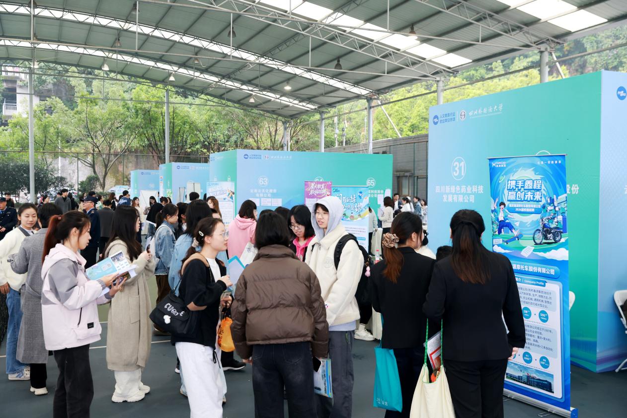 副校长严功军到双选会现场与云南云天化股份有限公司、四川新绿色药业科技发展有限公司、福建世颐集团有限公司等各行业用人单位进行了深入交流。严功军指出,学校围绕服务国家战略与重庆“33618”产业布局,持续深化与行业产业的对接,推动毕业生就业去向更加多元,川外毕业生的综合能力正获得越来越多企业的肯定。本次双选会不仅迎来不少新单位加入,也汇聚了众多长期合作的伙伴,学校期待未来在人才供需、校企协同、产教融合等方面进一步拓展合作空间。他同时寄语毕业生,要准确把握当前就业形势,紧抓秋招扫尾的关键阶段,充分利用学校搭建的双选会、专场宣讲会等校企对接平台,努力实现高质量充分就业。