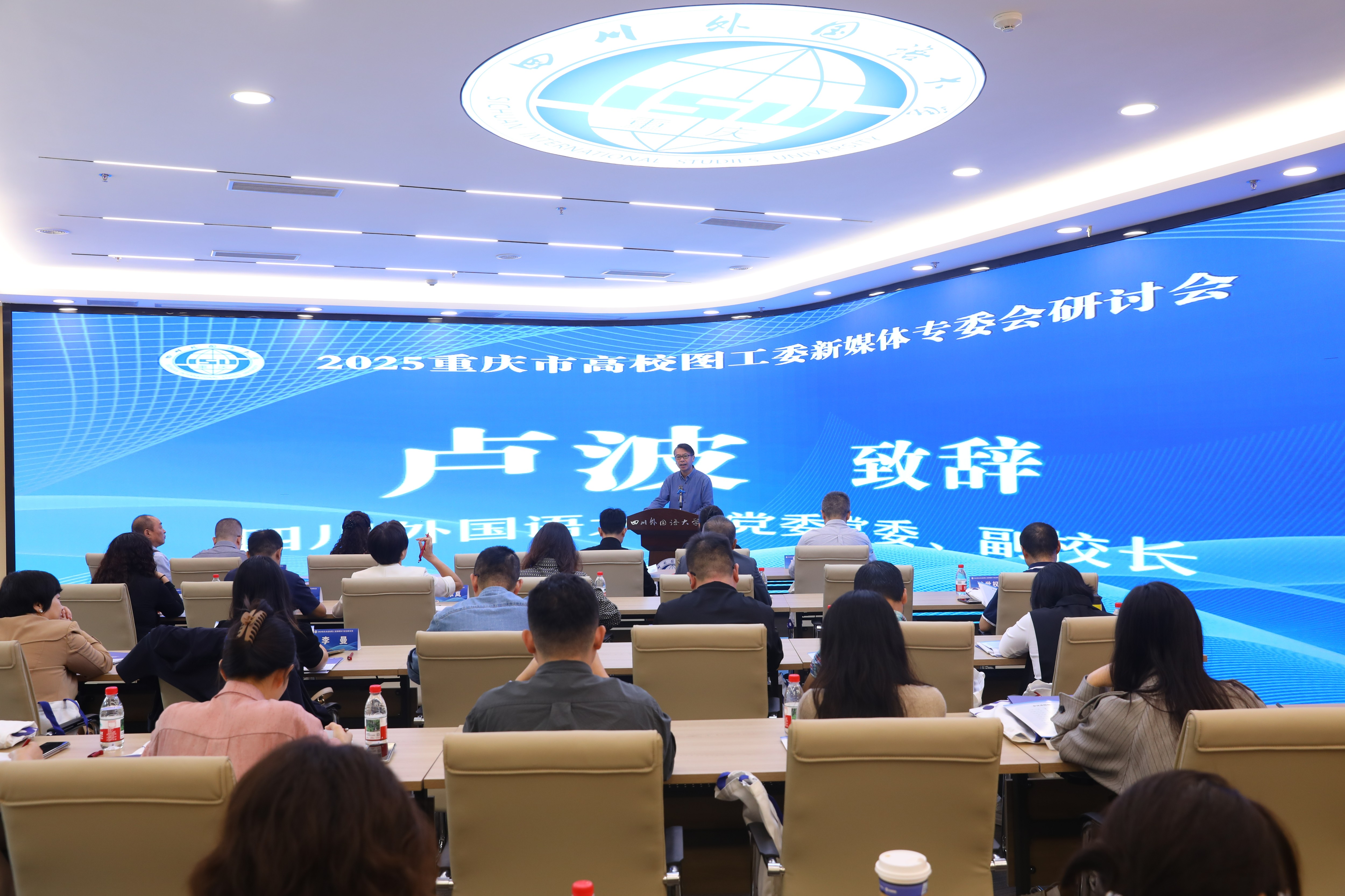 10月17日,由重庆市高等学校图书情报工作委员会主办,重庆工商大学图书馆与四川外国语大学图书馆联合承办的2025年重庆市高校图工委新媒体专委会研讨会在我校图书馆成功举行。本次研讨会以“生成式AI驱动的高校图书馆新媒体服务变革——实践路径与伦理边界”为主题,吸引了来自重庆市27所高校的图书馆馆长、业务骨干及业内专家共计50余人参会,共同探讨人工智能时代高校图书馆服务创新的发展方向。学校副校长卢波出席并致欢迎辞。