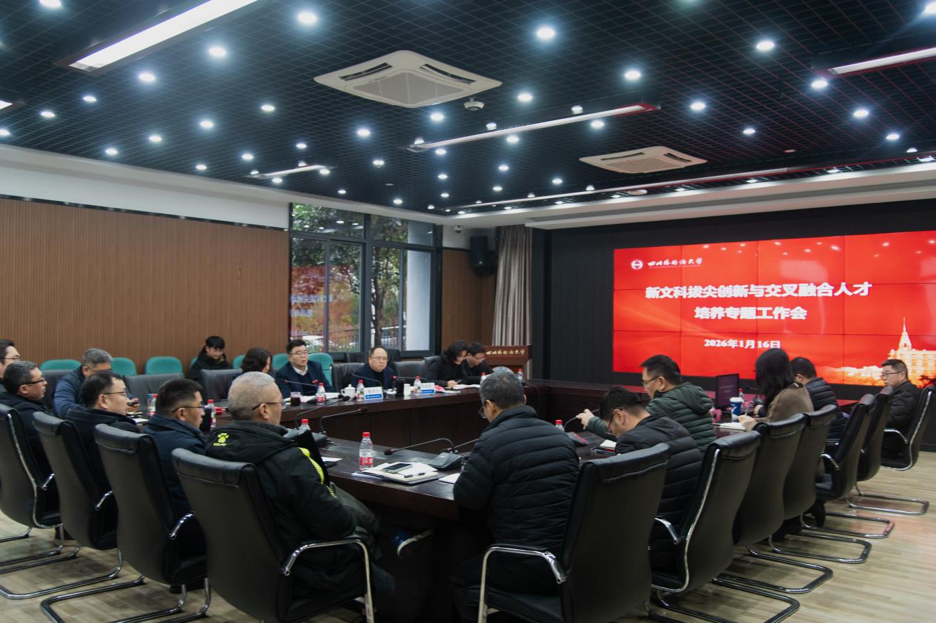 1月16日上午,学校在立德楼C117召开新文科拔尖创新与交叉融合人才培养专题工作会议,校长董洪川出席会议。副校长严功军主持会议。