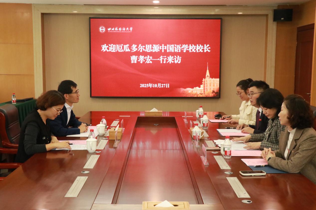 10月27日上午,厄瓜多尔思源中国语学校孔子课堂第三届理事会在西区立德楼A301会议室举行。思源中国语学校校长曹孝宏、主任张艳,我校校长董洪川、党委副书记苟朝莉出席会议。