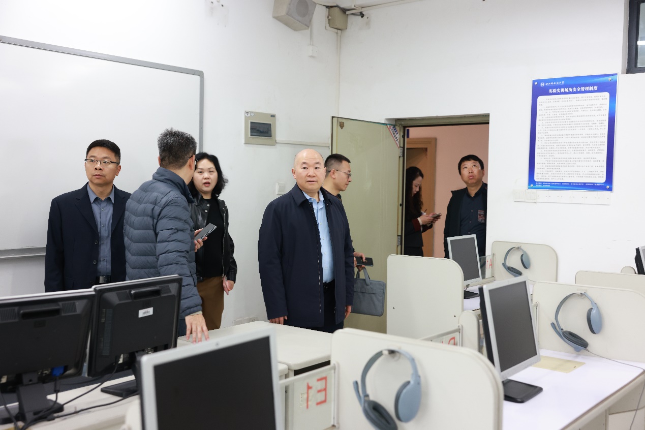 王仁强一行实地走访了宏文楼、博文楼、大礼堂和歌乐楼等楼宇实验室,认真听取国际金融与贸易学院、国际工商管理学院、中国语言文化学院、英语学院、东方语言文化学院、新闻传播学院、网络信息中心和教务处等单位实验室安全负责人的工作汇报,详细了解开学以来实验室运行、安全自查开展情况及当前安全管理存在的难点问题。