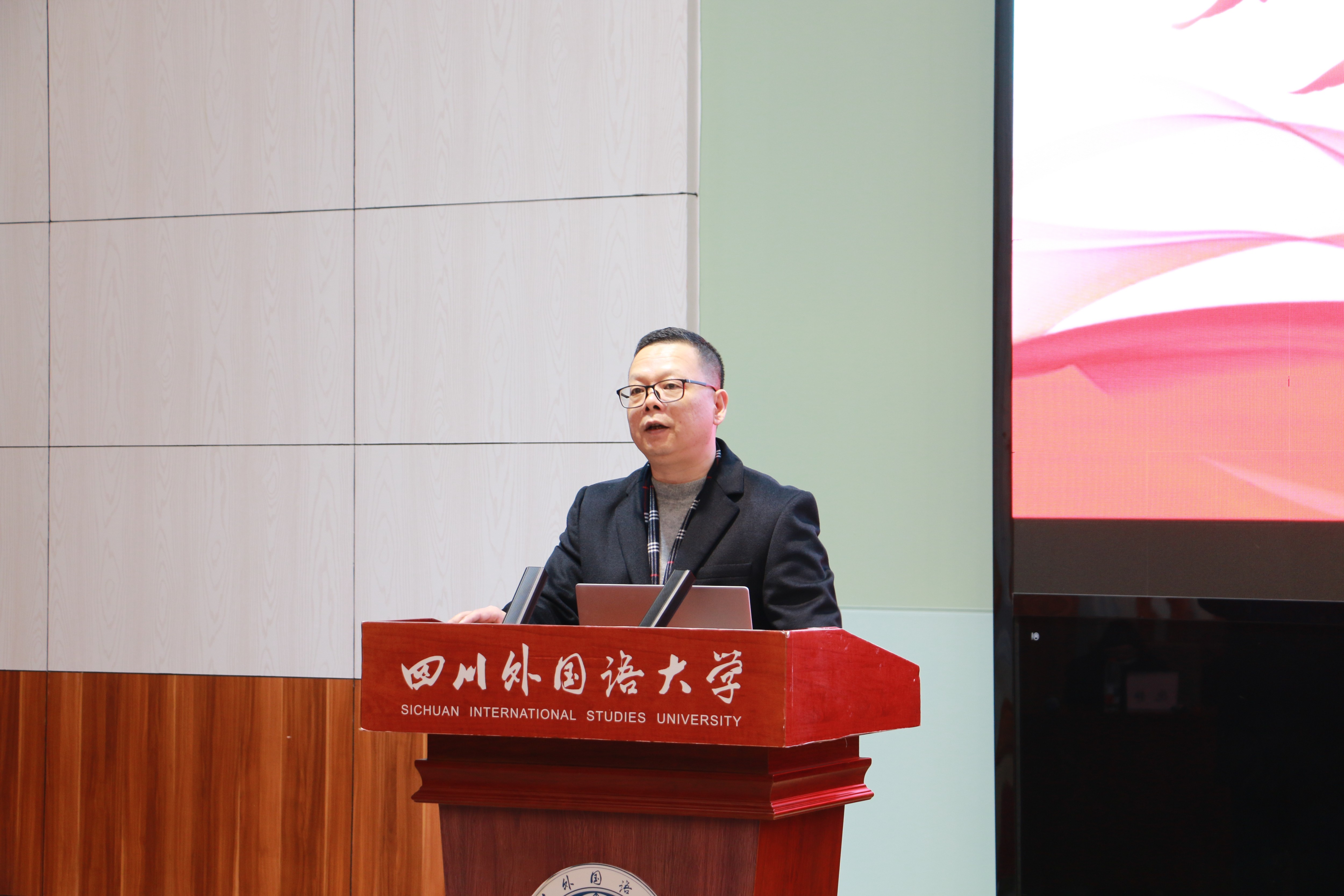 2025年12月3日上午,英语学院博士生党员宣讲团在宏文楼国际报告厅开展党的二十届四中全会精神中英双语专题宣讲会。英语学院党总支书记淡修安,博士生党支部党员、博士生党员宣讲团以及全体师生党员参加宣讲会。英语学院党总支副书记倪静主持宣讲会。