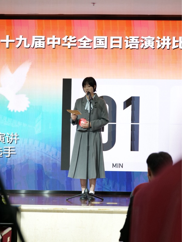 备赛期间,陈玺妃得到了日语学院领导老师、外教村瀬隆之老师及同学们的全力支持,系统的模拟训练与细致指导为优异成绩的取得奠定了坚实基础。