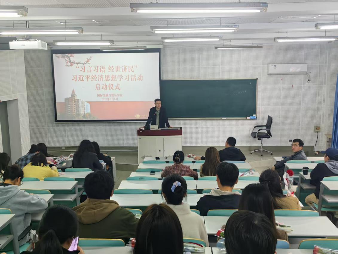 为深入学习贯彻习近平经济思想,扎实推动党的创新理论融入教学科研、人才培养全过程,新学期伊始,国际金融与贸易学院举行“习言习语 经世济民”习近平经济思想学习活动启动仪式。学院领导班子、全体教职工及学生党员代表参加仪式。