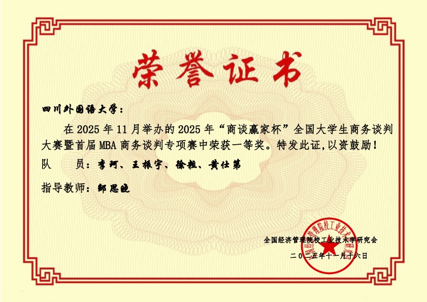 同学们在多项其他全国级创新创业赛事的角逐中同样表现卓越、硕果累累。国际金融与贸易学院陈伟杰、王芝瑶、张可等,王子涵、石婧雅等,李珂、徐粒等,向超、孟艾铭等,苗涵蓉、张宸溪等多支团队,分别在 2025 年全国高校商业精英挑战赛的商务谈判竞赛、国际贸易竞赛中斩获一等奖;翻译学院 “这很难评” 团队(陈俊烨等)同样在该赛事商务谈判竞赛中夺得一等奖,国际法学与社会学院吴相雨、钟茗卉、肖飞燕团队则在赛事涉外商事法律服务赛道全国总决赛中获一等奖;在 “商谈赢家杯” 全国大学生商务谈判竞赛中,国际金融与贸易学院陈伟杰、王芝瑶等,李珂、王振宇等,向超、孟艾铭等团队均拿下一等奖;国际金融与贸易学院万紫嫣、杨露团队在第七届数字营销大赛 —— 我为德宏代言直播赛道线下赛段中荣获一等奖;商务英语学院马嘉灿在 2025 年 “科创杯” 大学生数学建模竞赛数模知识竞赛赛道国赛中斩获一等奖,充分彰显了学校学子在商务谈判、国际贸易、数字营销、数学建模等多个领域的扎实专业功底与出色创新实践能力。