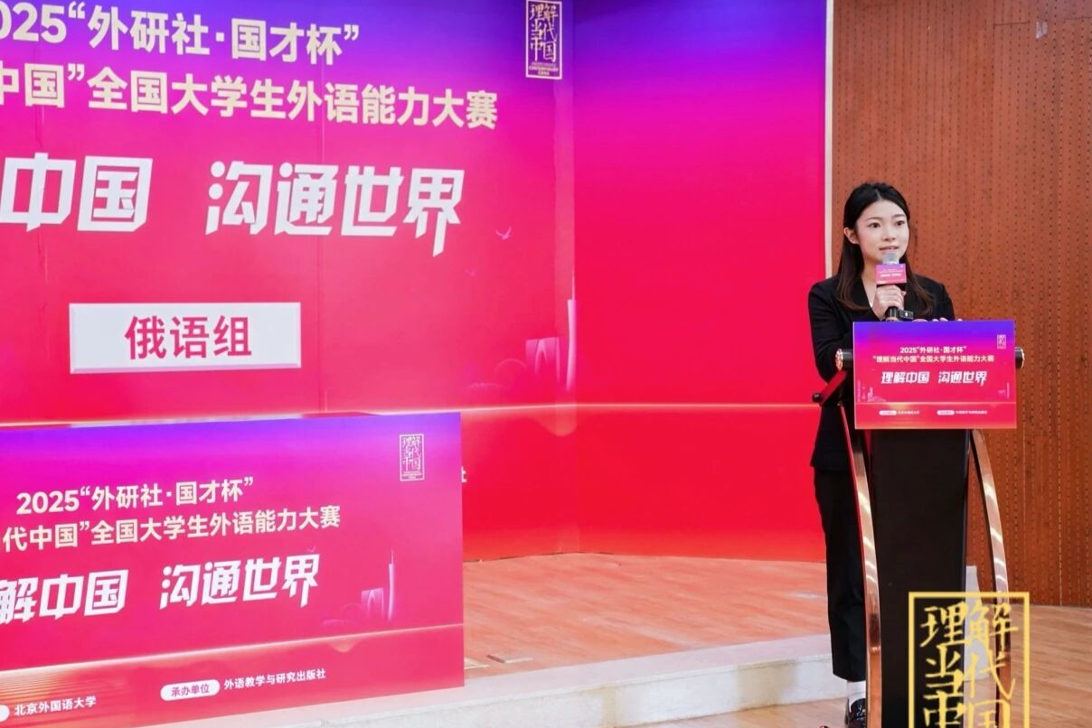 在外研社・国才杯“理解当代中国”系列赛事中,英语学院石秀文在英语组口译赛项中斩获国赛金奖;俄语学院彭琭琪获俄语组国赛银奖,东方语言文化学院王润雪、法语学院高睿麟、西方语言文化学院王慧霖分别摘得阿拉伯语、法语、西班牙语组国赛银奖,展现出过硬的语言应用能力。我校获得优秀组织单位奖。